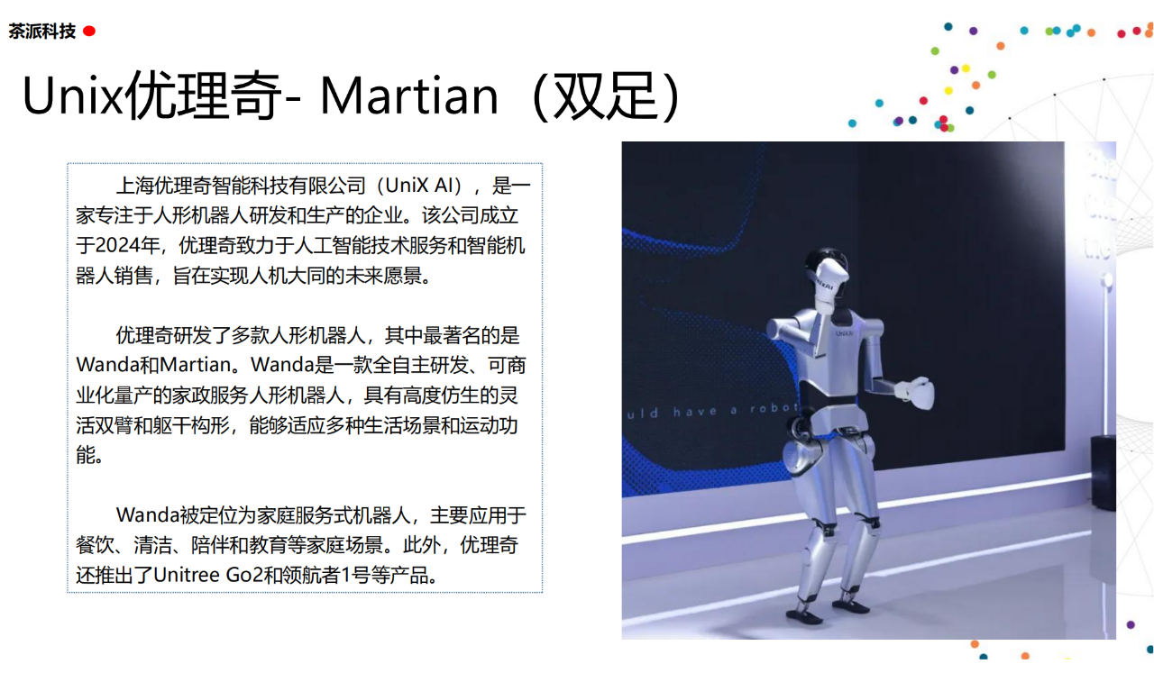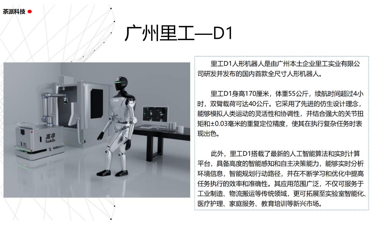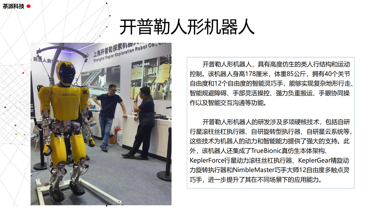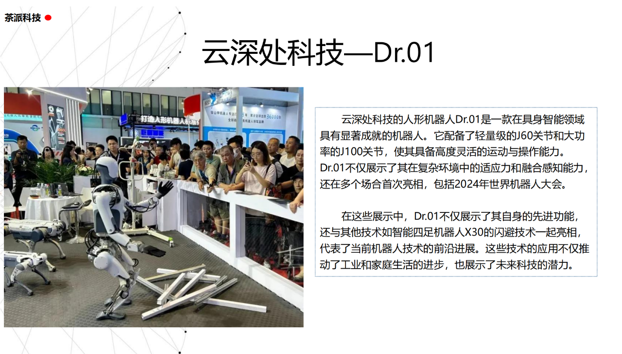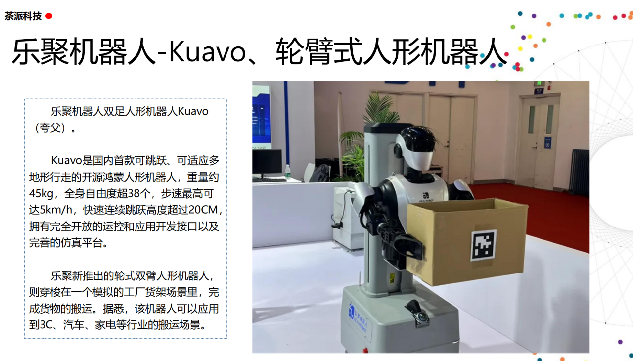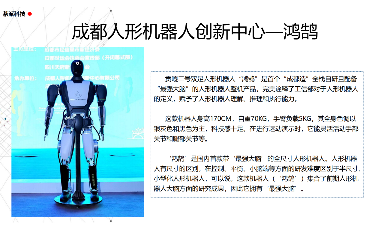 從實驗室到生產線,從概念設想到產品落地,中國人形機器人領域迎來了前所未有的井噴式發展。一款款設計精巧、功能強大的人形機器人如雨后春筍般涌現,它們或靈巧如舞者,或力大無窮,更不乏擁有情感交互能力的“智慧伴侶”。這不僅是對技術極限的一次次挑戰,更是對“中國制造”向“中國智造”跨越的生動詮釋。??在這一波人形機器人浪潮中,無數初創團隊猶如璀璨星辰,他們懷揣夢想,勇于探索未知。每一個深夜的燈火,每一次算法的迭代,都是對未知世界的勇敢叩問。正是這些充滿激情與創造力的團隊,為人形機器人產業注入了源源不斷的活力與希望。??作為深耕機器人應用場景研究的先行者,武漢茶派科技深知責任重大。在這一年里,我們積極擁抱變革,密切關注中國人形機器人產業的每一步成長。我們愿做那座橋梁,連接百家智慧,匯聚行業力量,共同推動人形機器人從技術的象牙塔走向廣闊的應用市場,讓科技之光溫暖每一個角落。??展望2025,我們滿懷期待。隨著技術的不斷迭代與應用的持續深化,人形機器人將不再只是展臺上的明星,而是真正成為我們生活的一部分。它們將穿梭于家庭、醫院、工廠、學校……以更加人性化、智能化的方式服務人類,成為我們不可或缺的伙伴與朋友。??在這一年的尾聲,讓我們向所有為中國機器人產業發展默默奉獻的科研工作者致以最崇高的敬意!是你們,用智慧和汗水鋪就了通往未來的智能之路。2025,讓我們攜手并進,共同見證人形機器人從夢想走進現實,開啟一個屬于所有人的智能新時代!??加入我們,一起見證并參與這場科技革命,讓未來因你我而更加精彩!