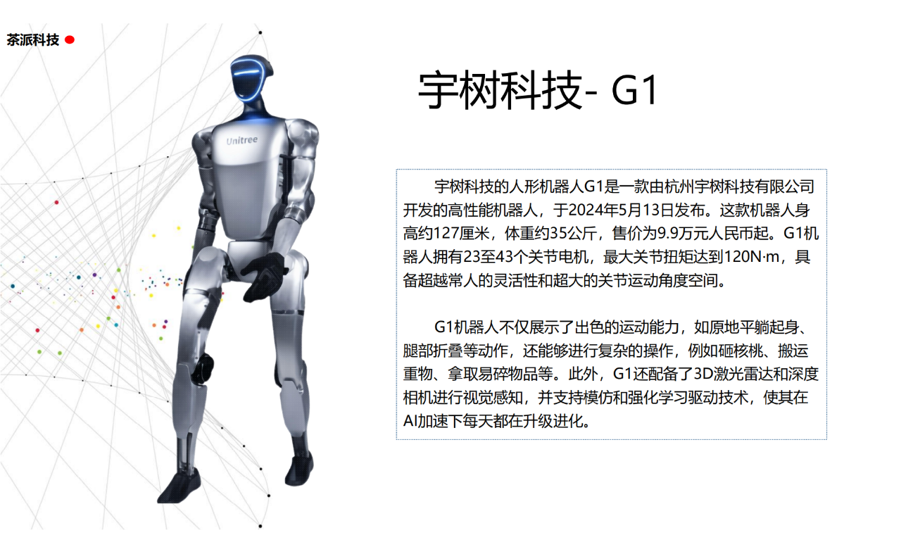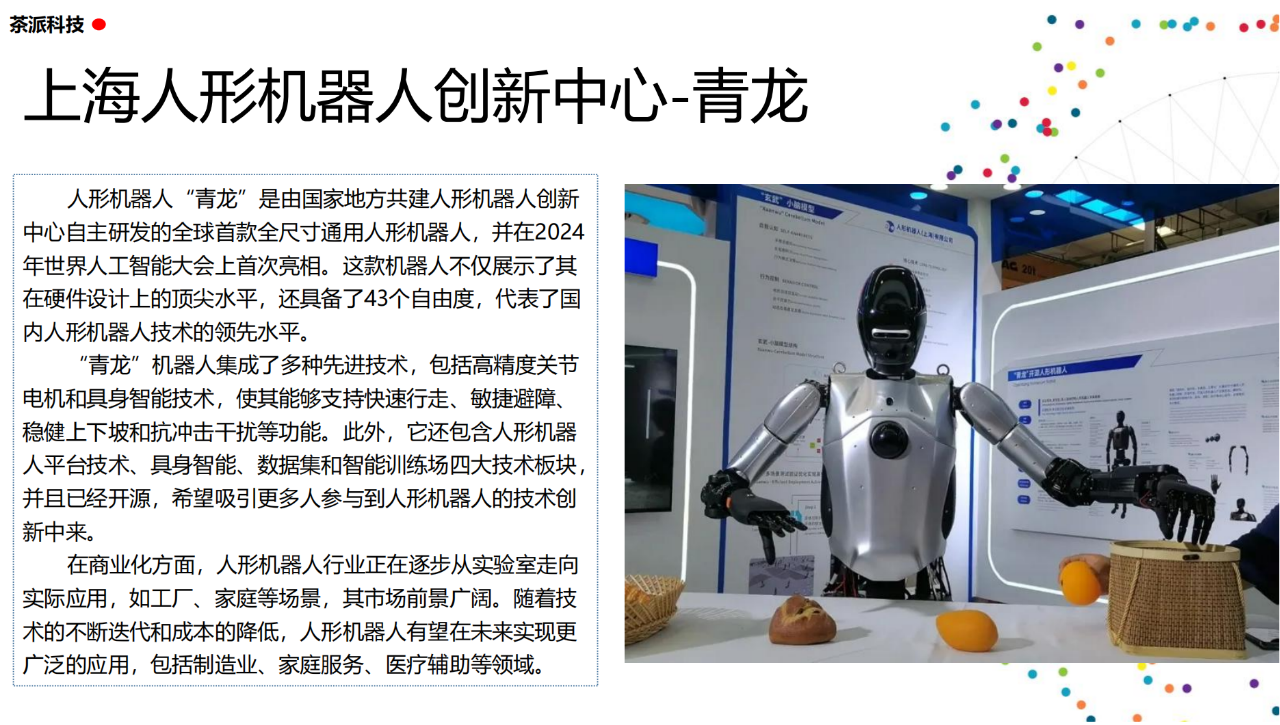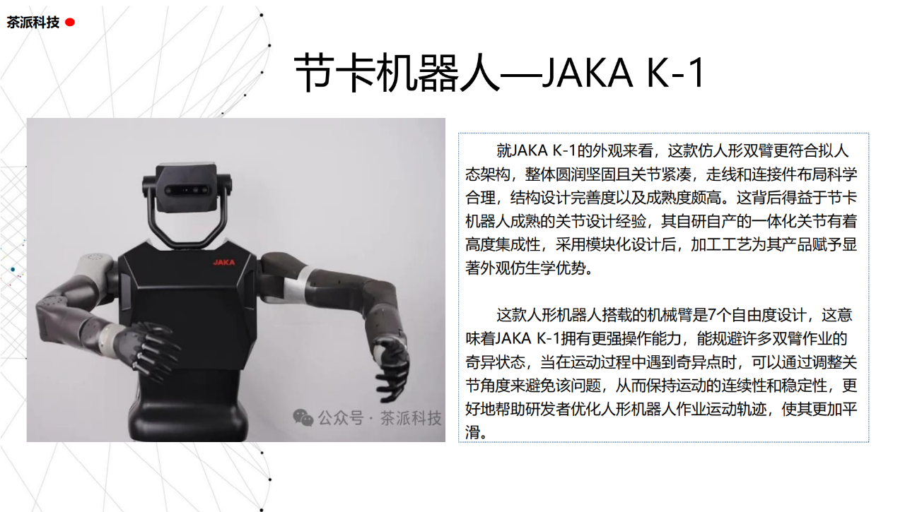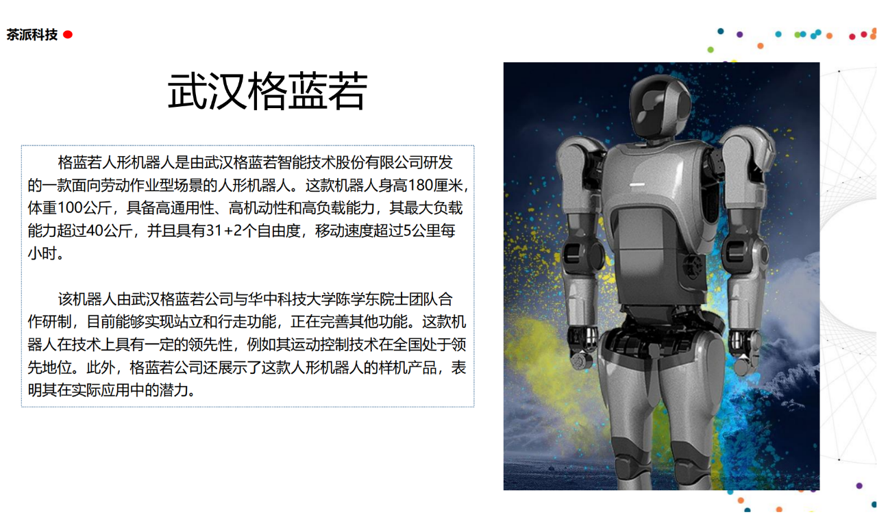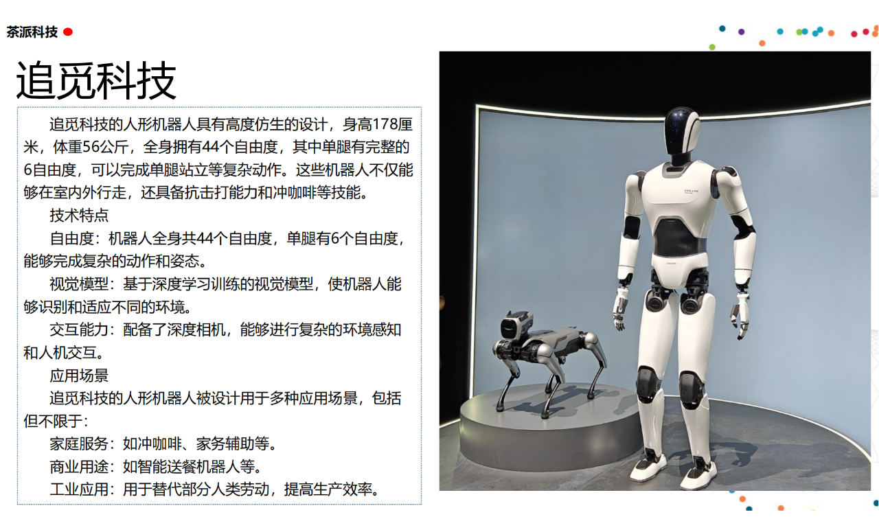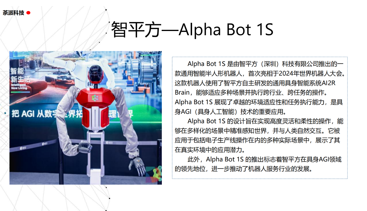 從實驗室到生產線,從概念設想到產品落地,中國人形機器人領域迎來了前所未有的井噴式發展。一款款設計精巧、功能強大的人形機器人如雨后春筍般涌現,它們或靈巧如舞者,或力大無窮,更不乏擁有情感交互能力的“智慧伴侶”。這不僅是對技術極限的一次次挑戰,更是對“中國制造”向“中國智造”跨越的生動詮釋。??在這一波人形機器人浪潮中,無數初創團隊猶如璀璨星辰,他們懷揣夢想,勇于探索未知。每一個深夜的燈火,每一次算法的迭代,都是對未知世界的勇敢叩問。正是這些充滿激情與創造力的團隊,為人形機器人產業注入了源源不斷的活力與希望。??作為深耕機器人應用場景研究的先行者,武漢茶派科技深知責任重大。在這一年里,我們積極擁抱變革,密切關注中國人形機器人產業的每一步成長。我們愿做那座橋梁,連接百家智慧,匯聚行業力量,共同推動人形機器人從技術的象牙塔走向廣闊的應用市場,讓科技之光溫暖每一個角落。??展望2025,我們滿懷期待。隨著技術的不斷迭代與應用的持續深化,人形機器人將不再只是展臺上的明星,而是真正成為我們生活的一部分。它們將穿梭于家庭、醫院、工廠、學校……以更加人性化、智能化的方式服務人類,成為我們不可或缺的伙伴與朋友。??在這一年的尾聲,讓我們向所有為中國機器人產業發展默默奉獻的科研工作者致以最崇高的敬意!是你們,用智慧和汗水鋪就了通往未來的智能之路。2025,讓我們攜手并進,共同見證人形機器人從夢想走進現實,開啟一個屬于所有人的智能新時代!??加入我們,一起見證并參與這場科技革命,讓未來因你我而更加精彩!