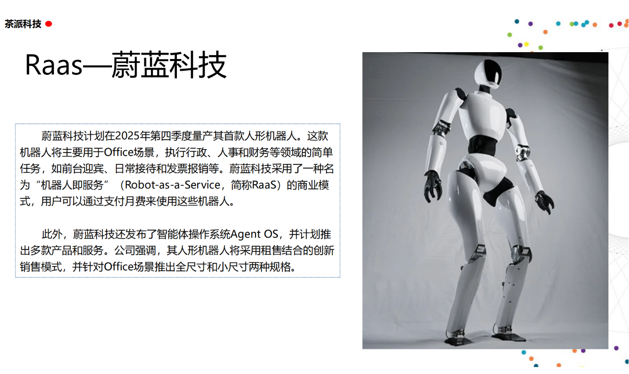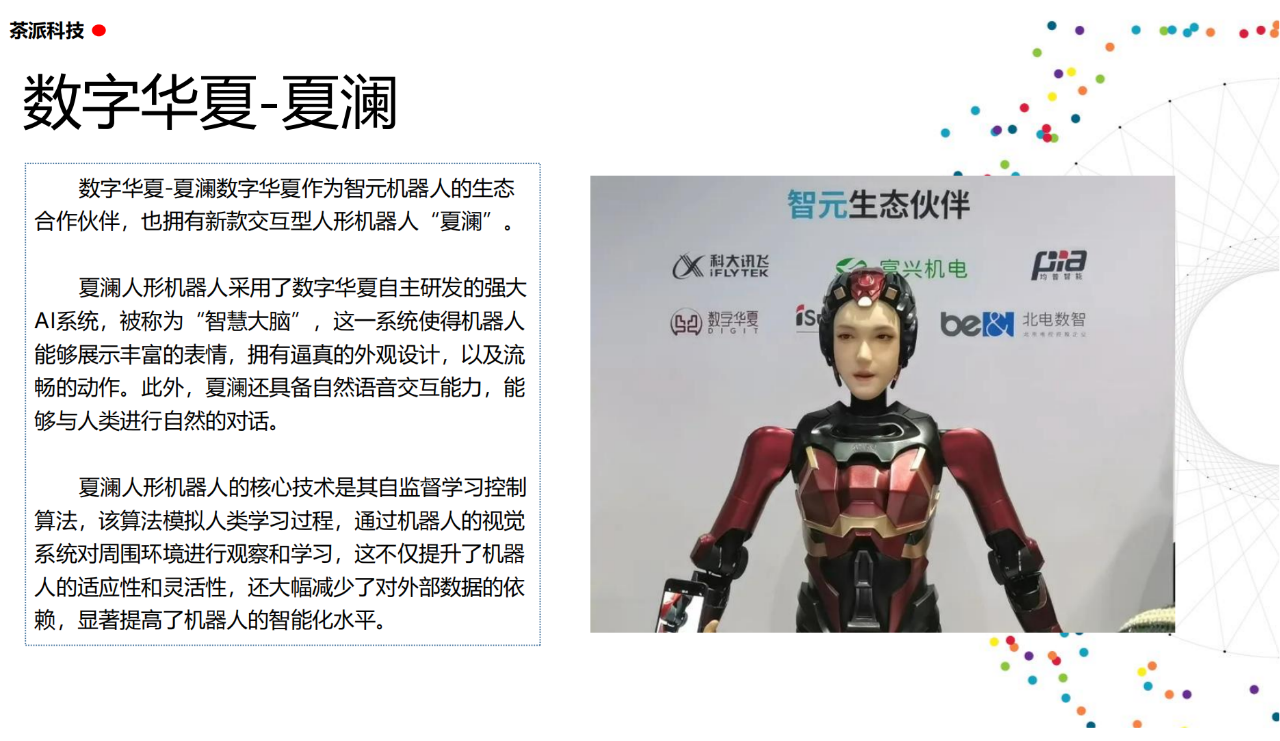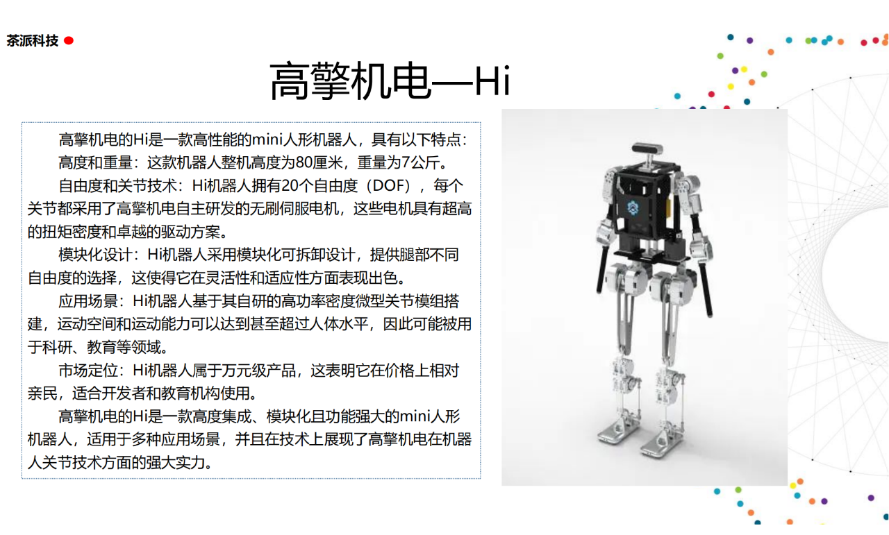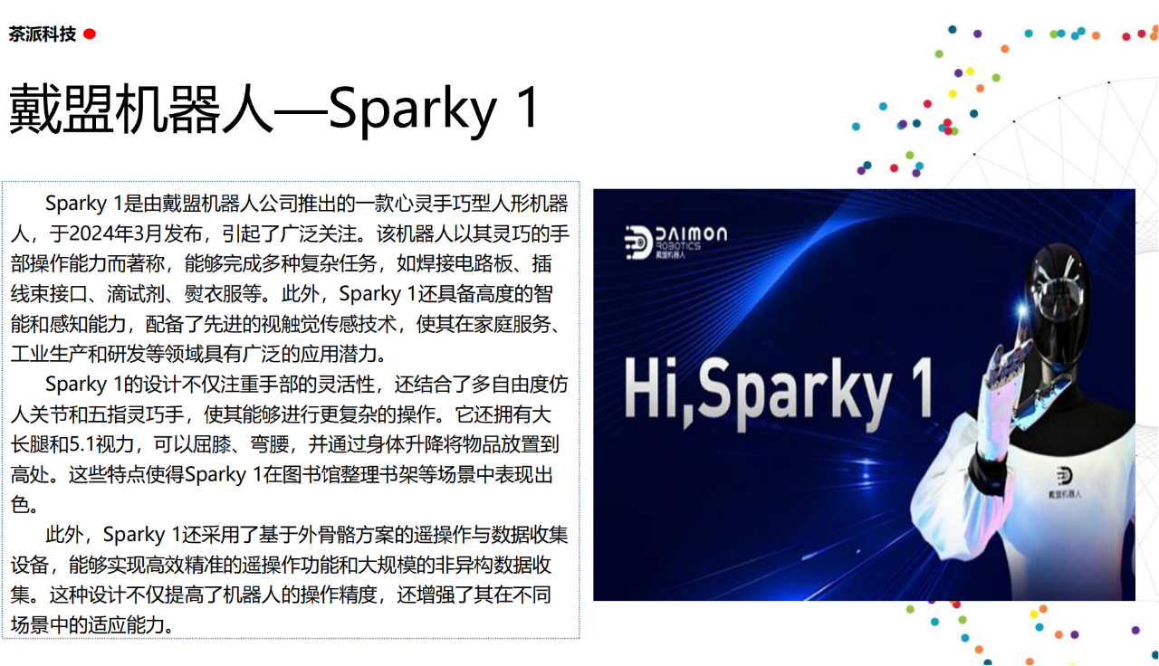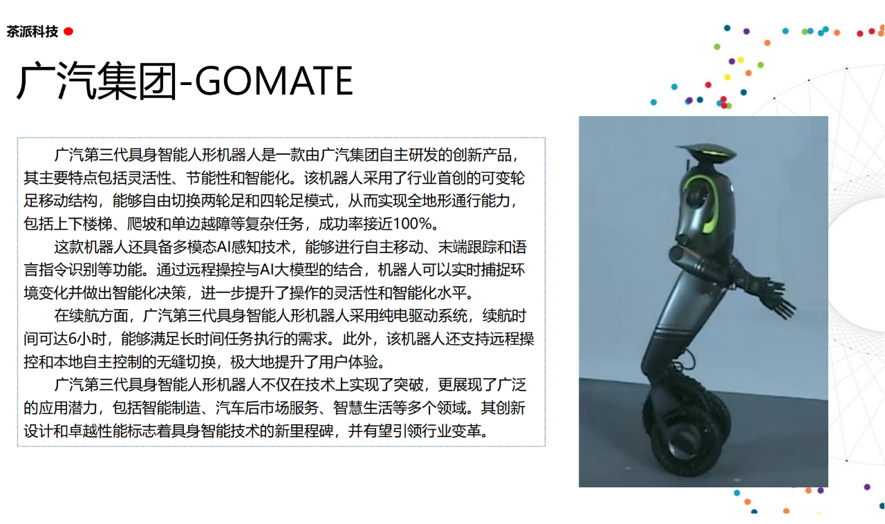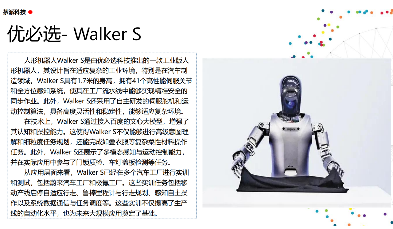 從實驗室到生產線,從概念設想到產品落地,中國人形機器人領域迎來了前所未有的井噴式發展。一款款設計精巧、功能強大的人形機器人如雨后春筍般涌現,它們或靈巧如舞者,或力大無窮,更不乏擁有情感交互能力的“智慧伴侶”。這不僅是對技術極限的一次次挑戰,更是對“中國制造”向“中國智造”跨越的生動詮釋。??在這一波人形機器人浪潮中,無數初創團隊猶如璀璨星辰,他們懷揣夢想,勇于探索未知。每一個深夜的燈火,每一次算法的迭代,都是對未知世界的勇敢叩問。正是這些充滿激情與創造力的團隊,為人形機器人產業注入了源源不斷的活力與希望。??作為深耕機器人應用場景研究的先行者,武漢茶派科技深知責任重大。在這一年里,我們積極擁抱變革,密切關注中國人形機器人產業的每一步成長。我們愿做那座橋梁,連接百家智慧,匯聚行業力量,共同推動人形機器人從技術的象牙塔走向廣闊的應用市場,讓科技之光溫暖每一個角落。??展望2025,我們滿懷期待。隨著技術的不斷迭代與應用的持續深化,人形機器人將不再只是展臺上的明星,而是真正成為我們生活的一部分。它們將穿梭于家庭、醫院、工廠、學校……以更加人性化、智能化的方式服務人類,成為我們不可或缺的伙伴與朋友。??在這一年的尾聲,讓我們向所有為中國機器人產業發展默默奉獻的科研工作者致以最崇高的敬意!是你們,用智慧和汗水鋪就了通往未來的智能之路。2025,讓我們攜手并進,共同見證人形機器人從夢想走進現實,開啟一個屬于所有人的智能新時代!??加入我們,一起見證并參與這場科技革命,讓未來因你我而更加精彩!
